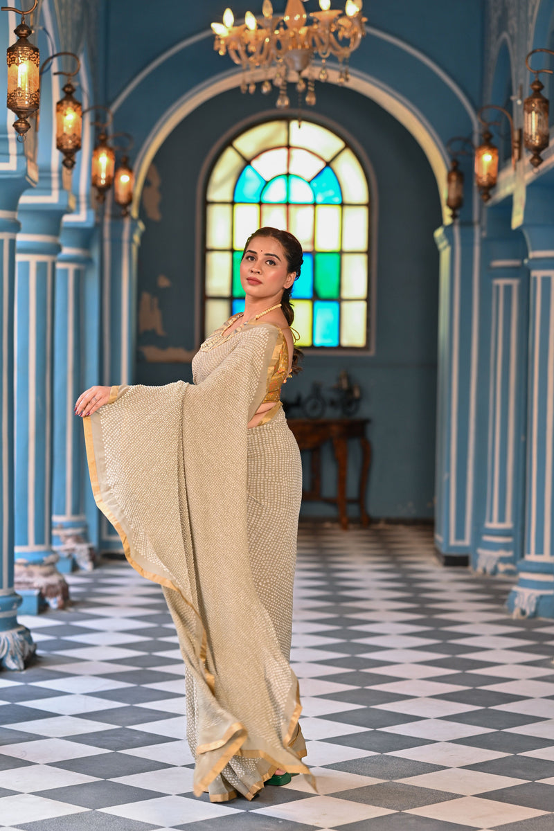 BEIGE JAPANESE BANDHANI SILK SAREE