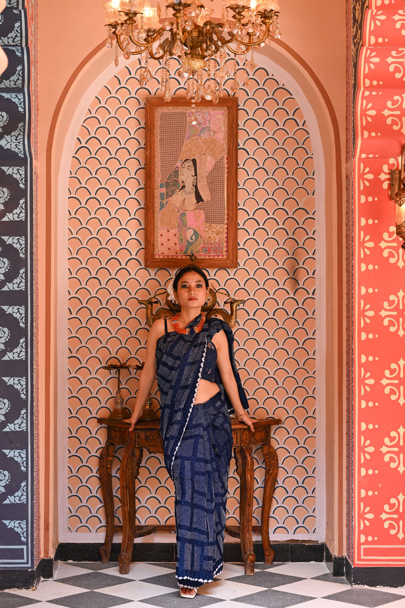 INDIGO BLUE GEOMETRIC S3 BANDHANI SILK SAREE