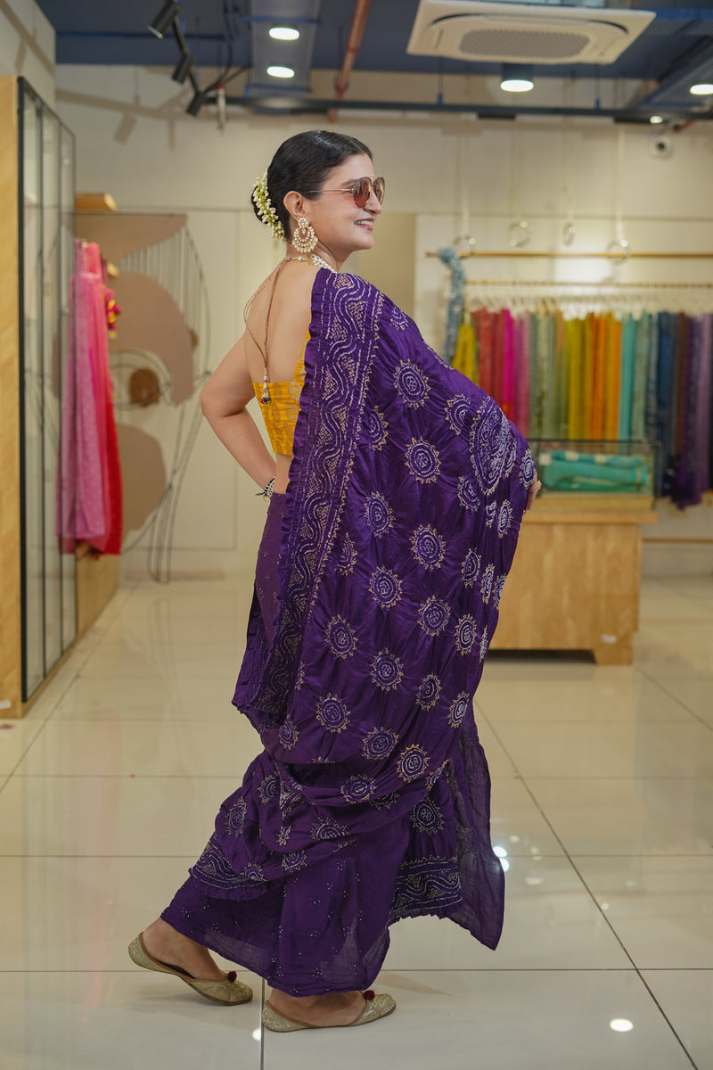 PURPLE CLASSIC TRADITIONAL LADDU SILK BANDHANI SAREE