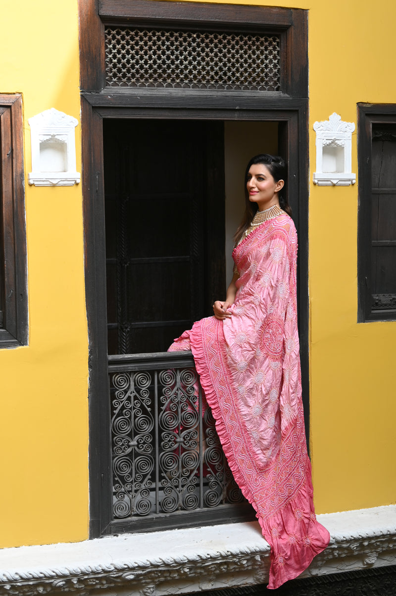 PEACH-PINK ETERNAL DOTS BANDHANI SILK SAREE