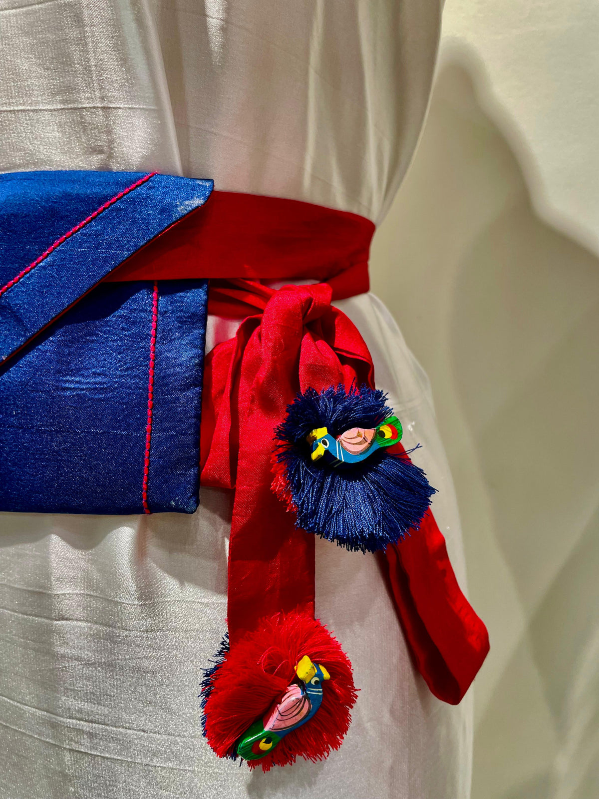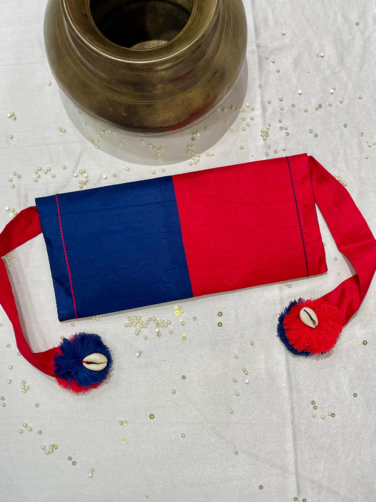 RED-BLUE SILK WAIST BAG WITH HANDMADE TASSELS