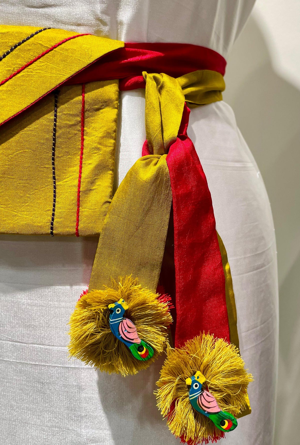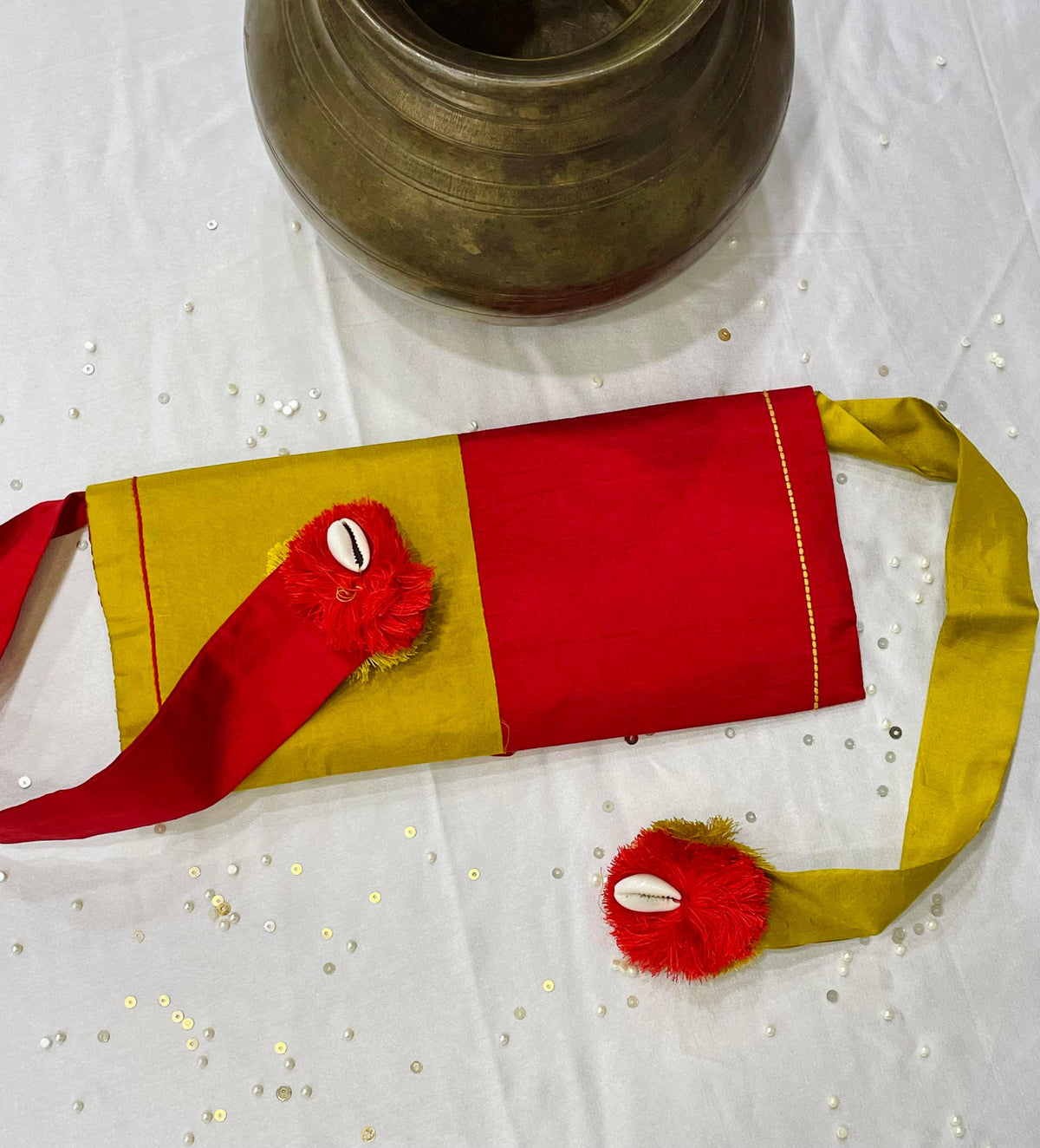 RED-YELLOW SILK WAIST BAG WITHHANDMADE TASSELS