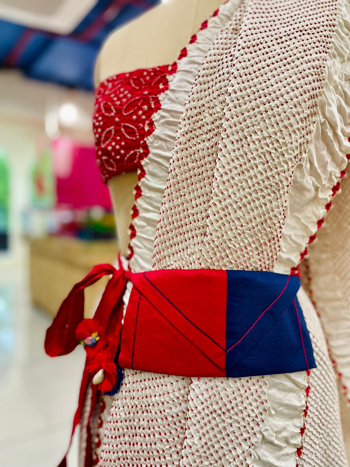 - Please avoid ironing to maintain the texture of your Bandhani.