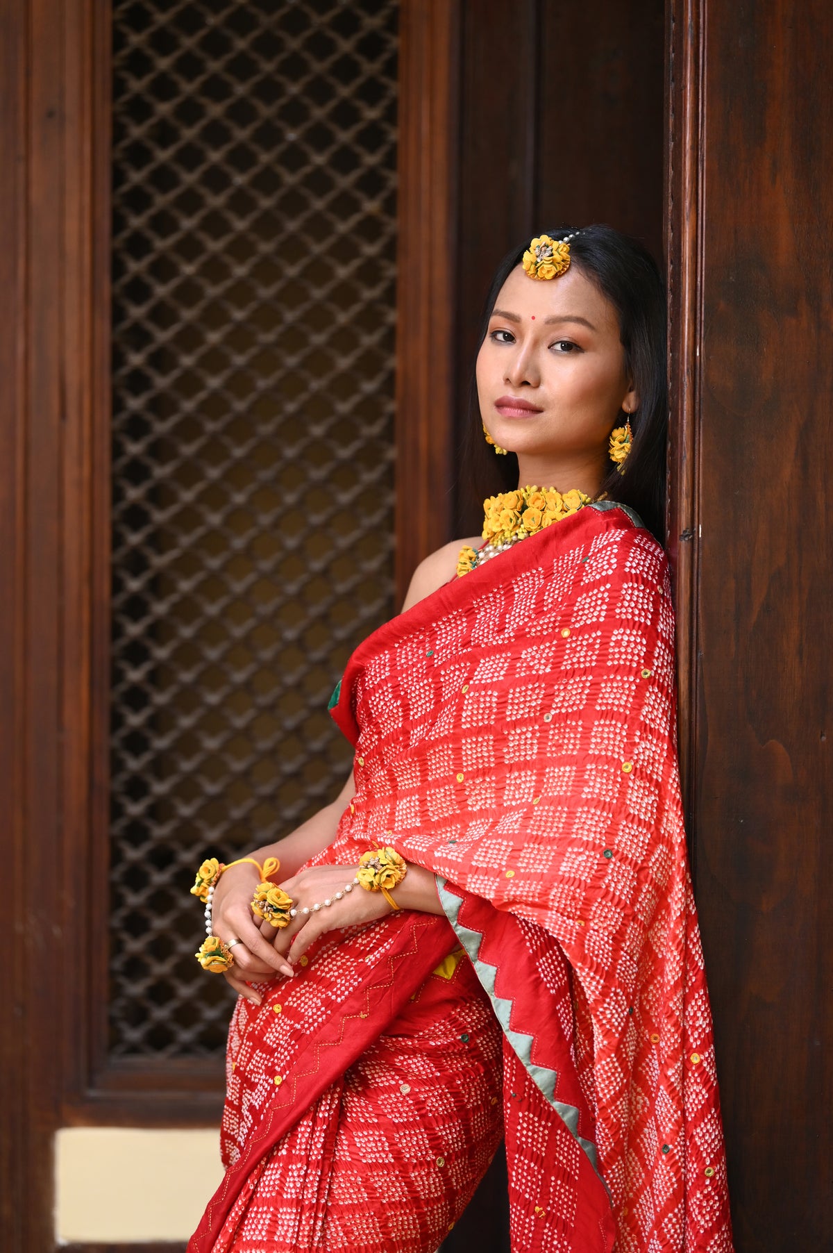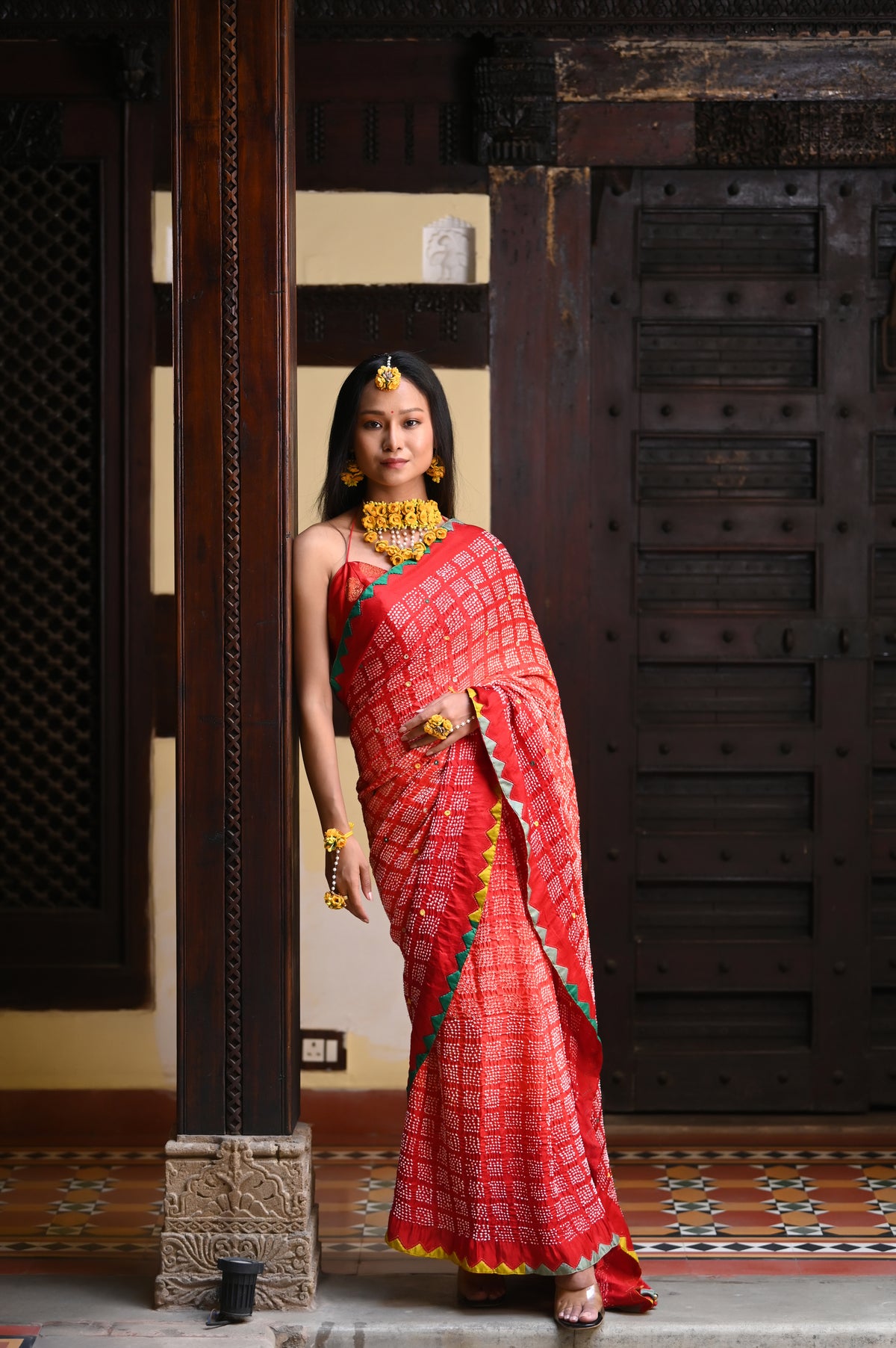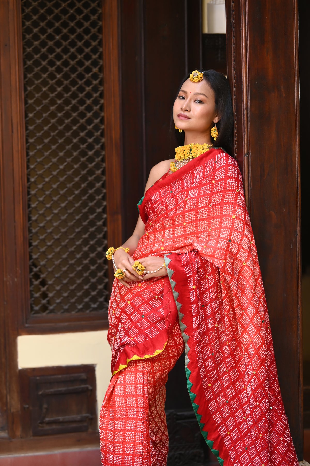 Geometric shapes redefine the traditional diamond patterns in Bandhani, creating classic and uniquely modern designs. This innovative approach offers a fresh way to wear and appreciate the timeless bandhani.