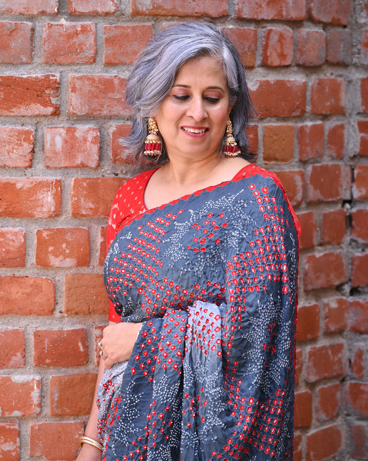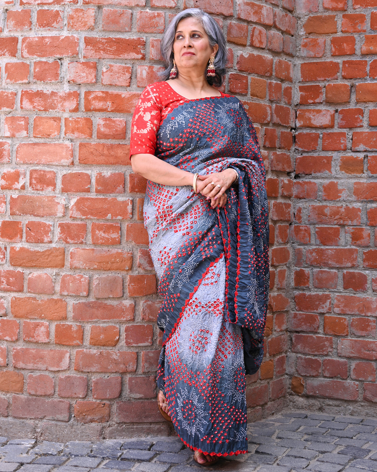 GREY SUNFLOWER BANDHANI SILK SAREE