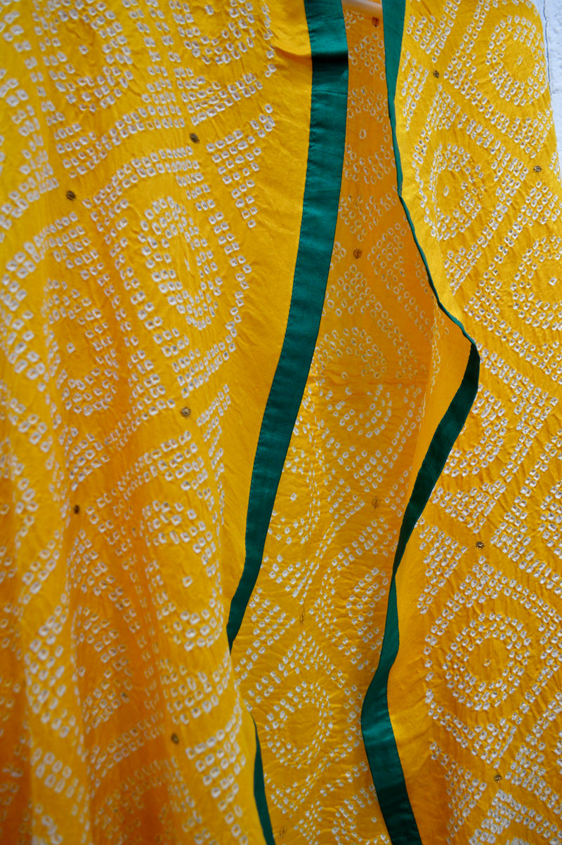 YELLOW DIAMOND SILK BANDHANI EMBROIDERED DUPATTA WITH SILK BORDER