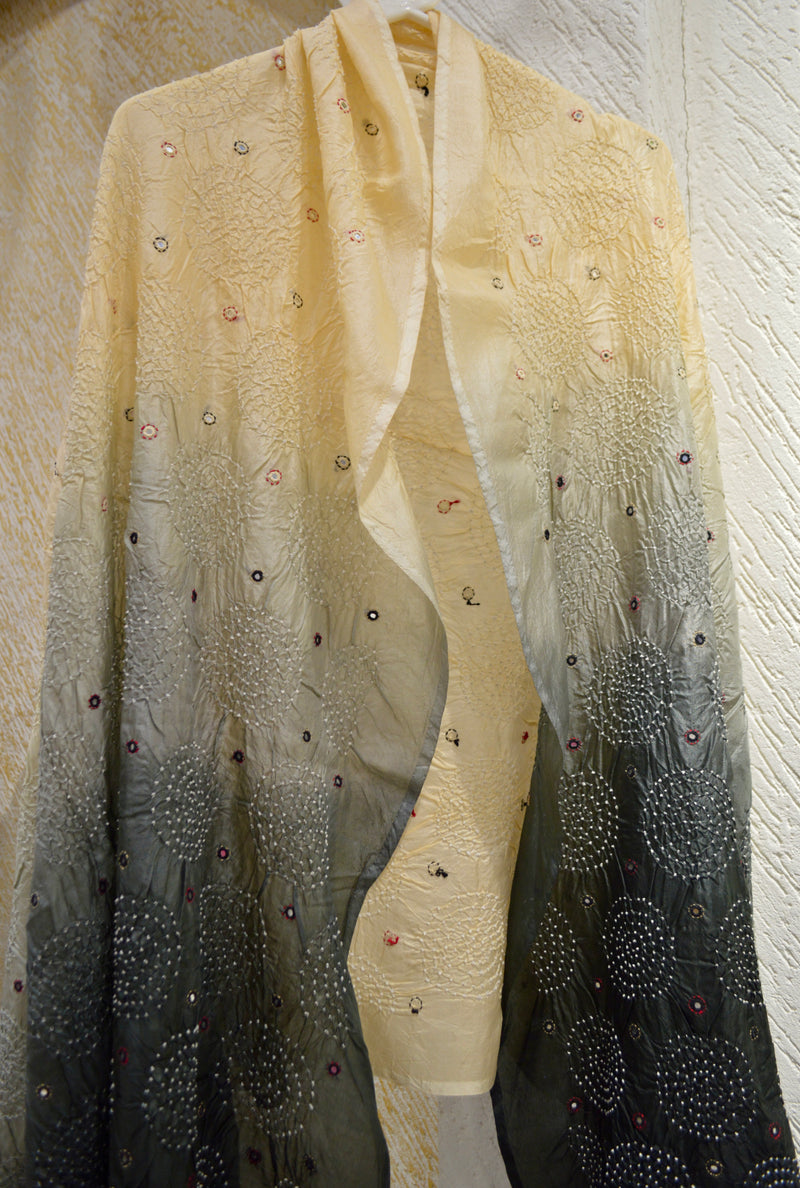 BLACK - BEIGE CIRCLE OF THE LIFE BANDHANI SILK EMBROIDERED DUPATTA WITH MIRROR WORK