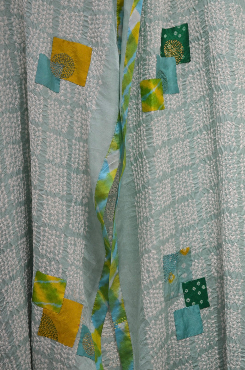LIGHT BLUE SQUARE SILK BANDHANI EMBROIDERED DUPATTA WITH PATCHWORK AND LEHERIYA BORDER