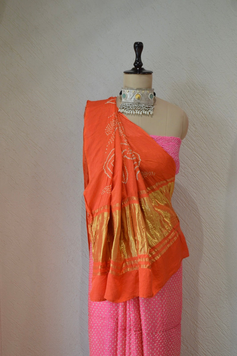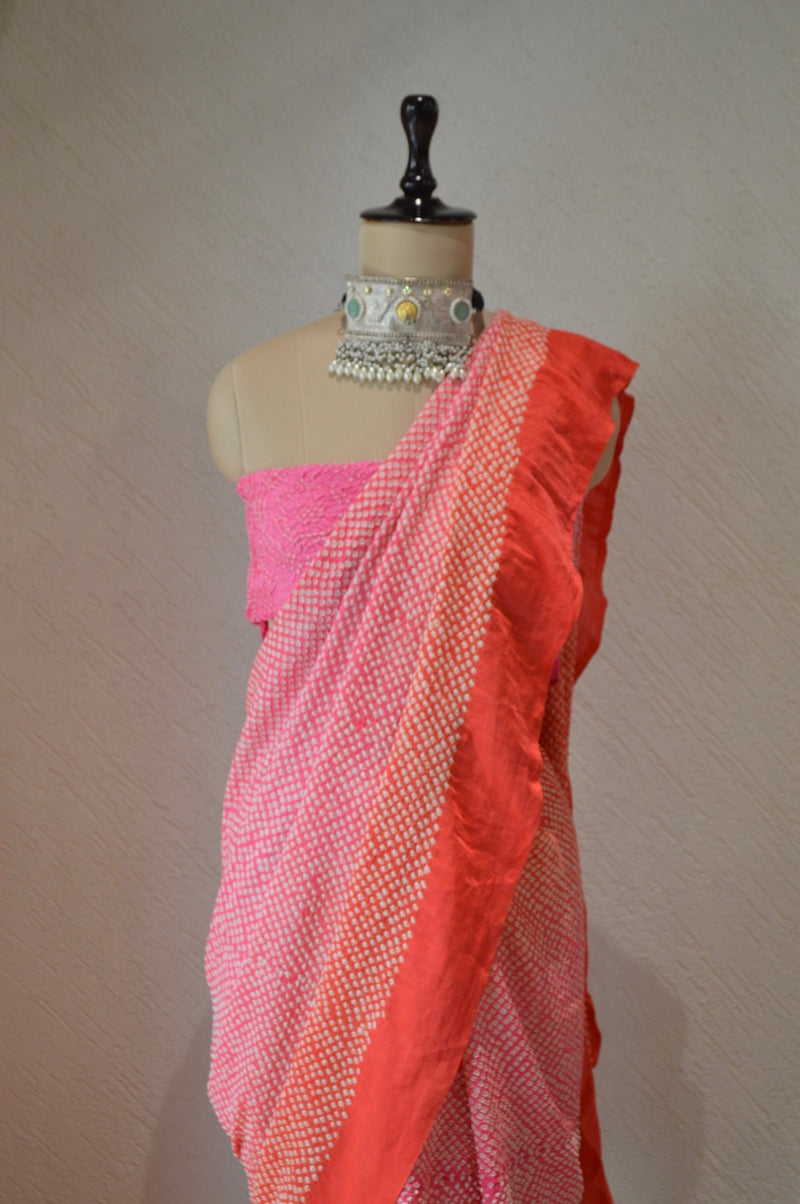 PINK - ORANGE ETERNAL DOT SILK BANDHANI SAREE