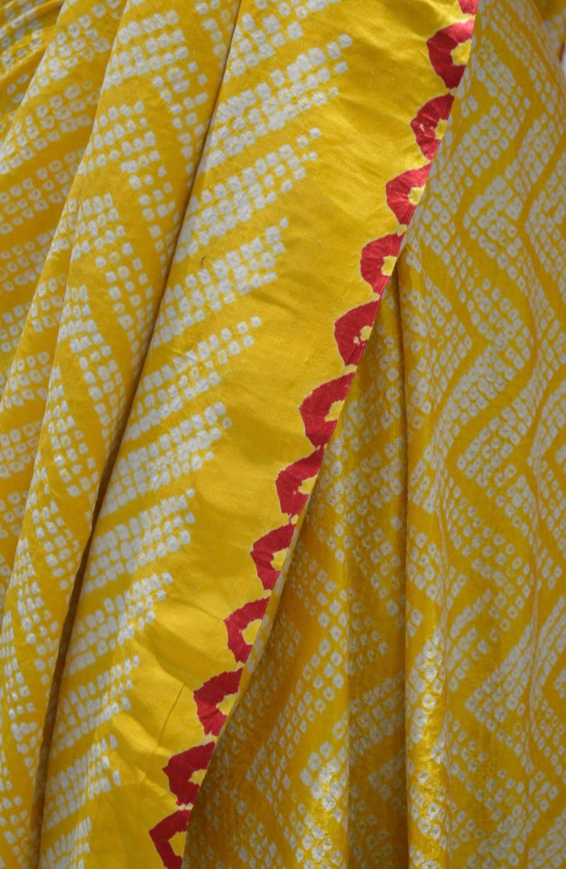 YELLOW O3 CHEVRON SILK BANDHANI SAREE