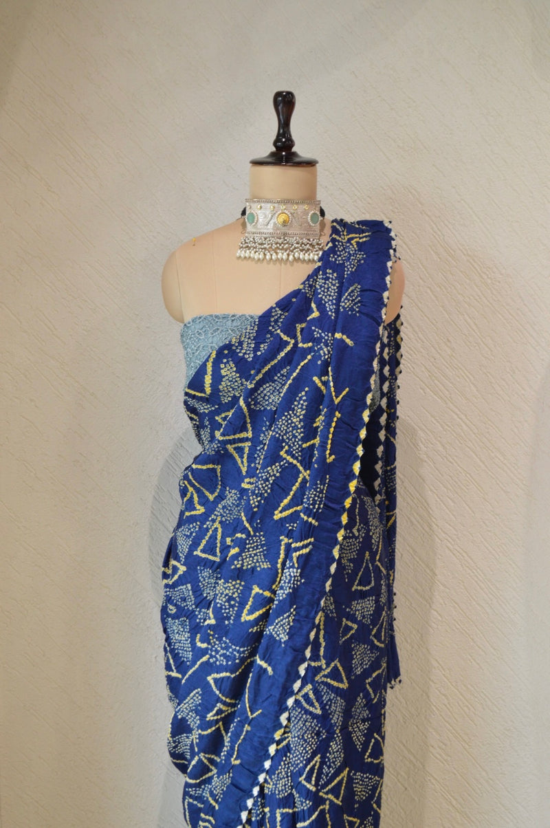 INDIGO BLUE GEOMETRIC SILK BANDHANI SAREE