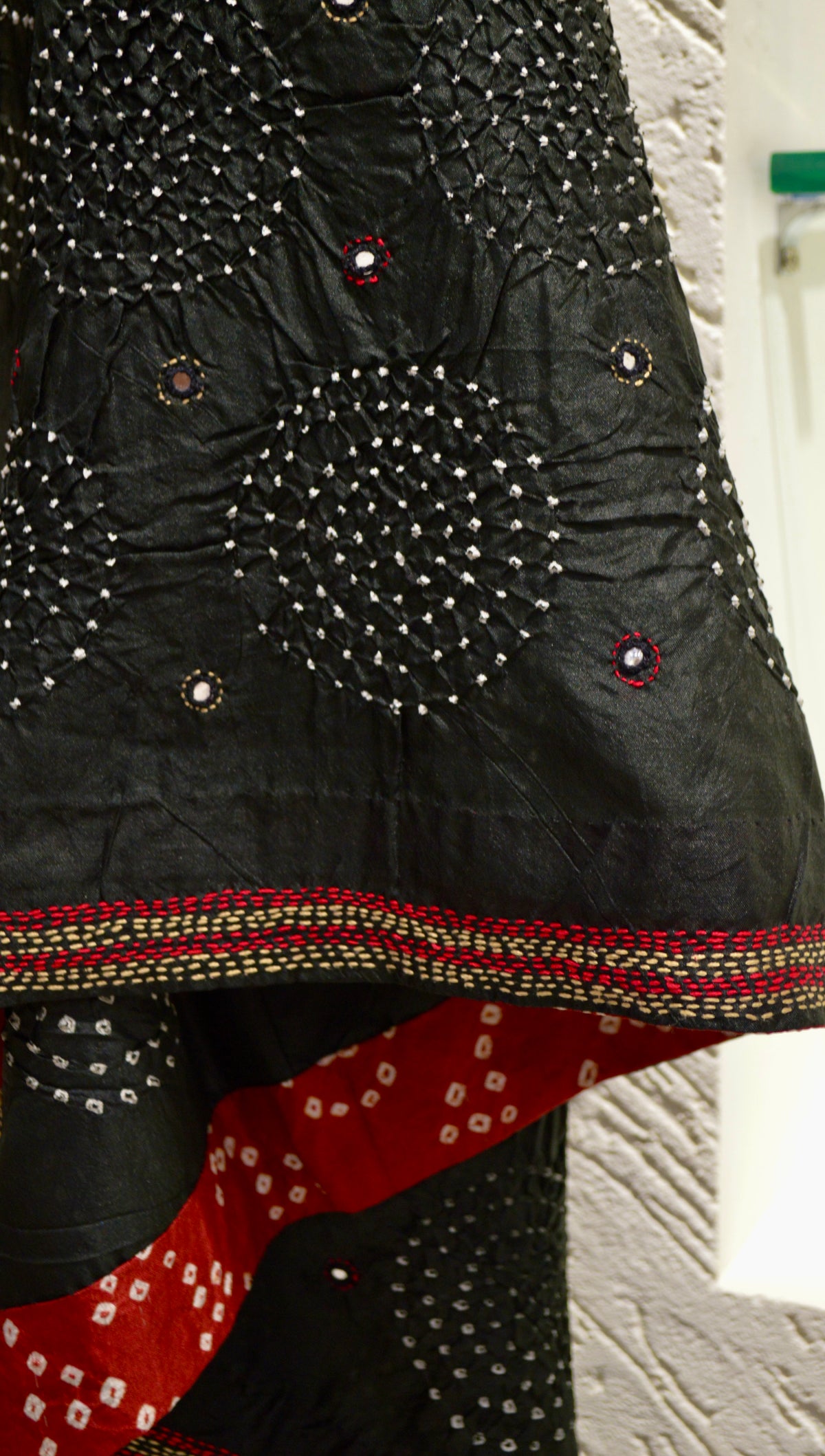 BLACK - BEIGE CIRCLE OF THE LIFE BANDHANI SILK EMBROIDERED DUPATTA WITH MIRROR WORK