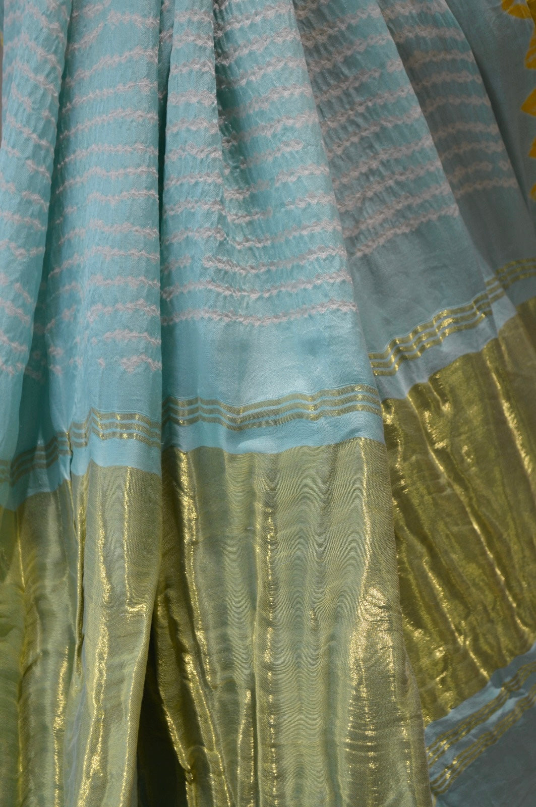 LIGHT BLUE LINES AND DOTS SILK BANDHANI SAREE