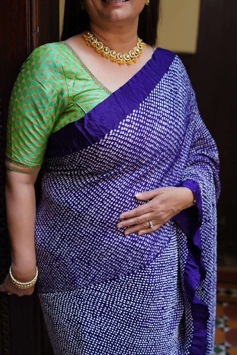 BLUE YIN-YANG HALF FULL HALF EMPTY ETERNAL DOT BANDHANI SILK SAREE