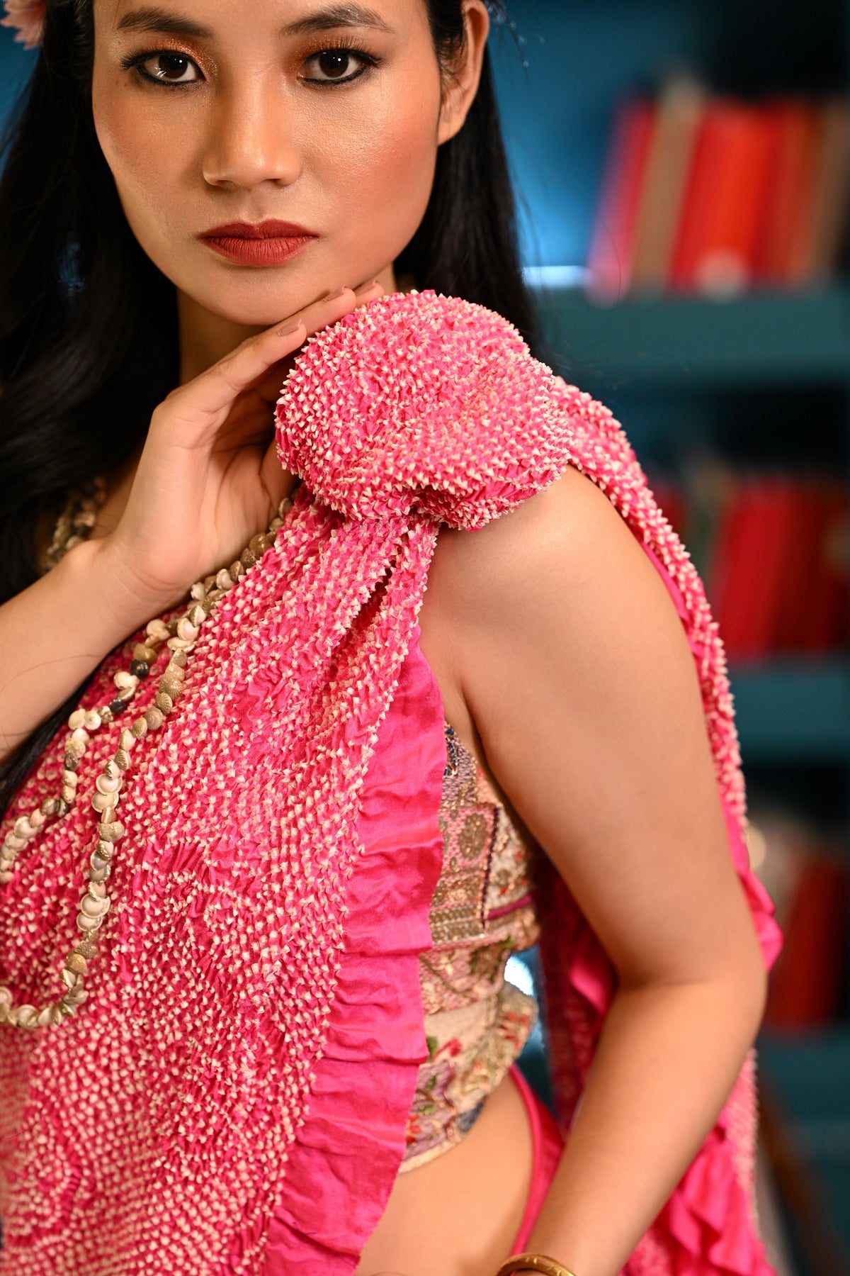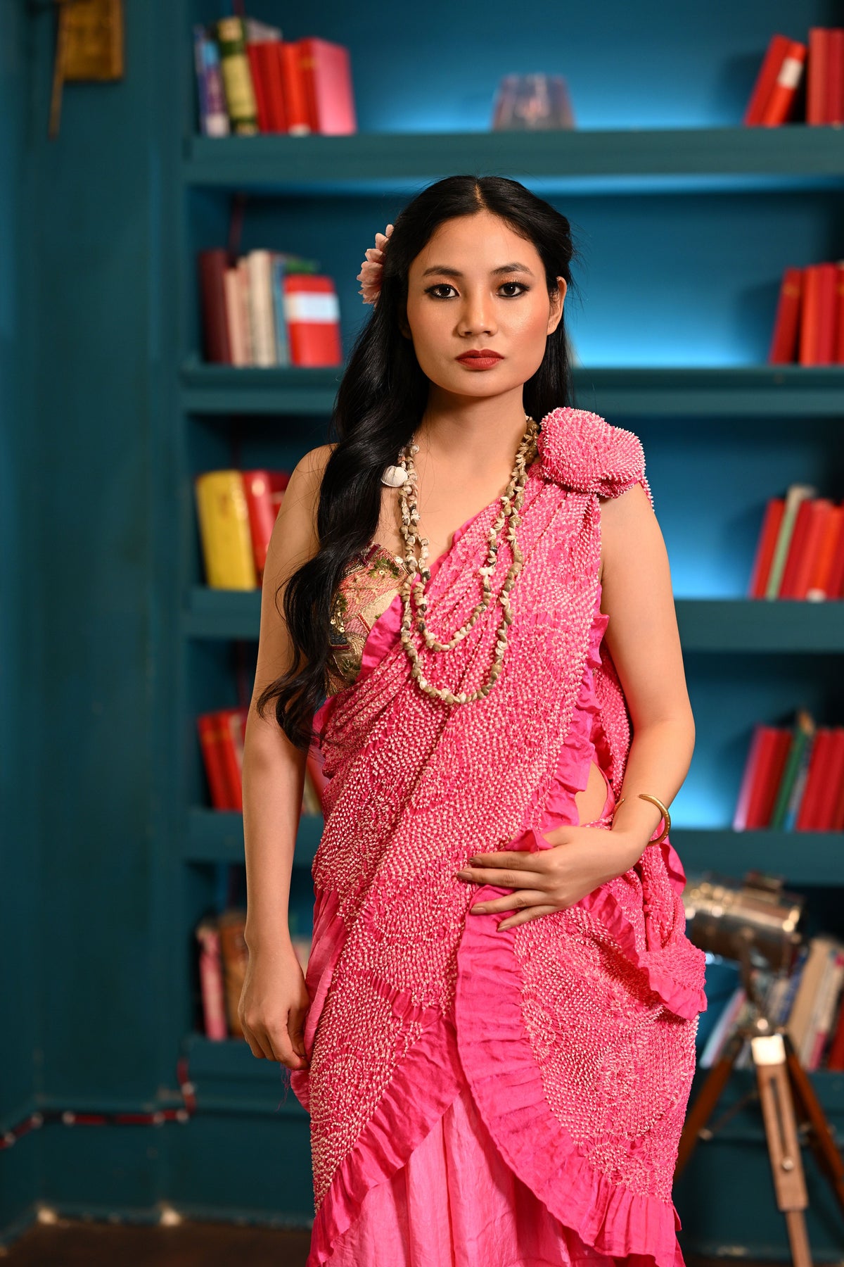 PINK YIN-YANG HALF FULL HALF EMPTY BANDHANI SILK SAREE